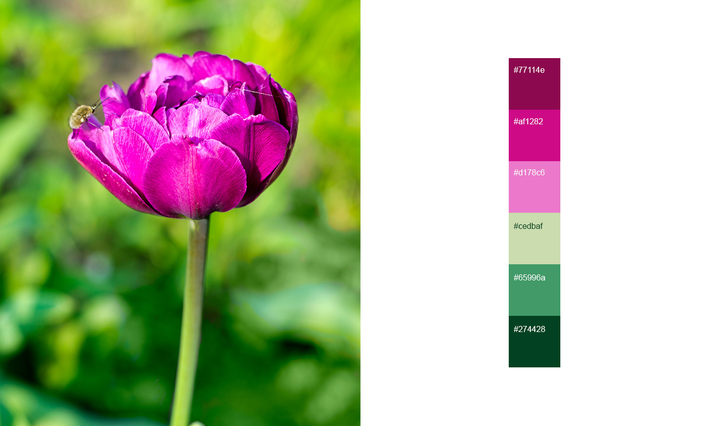 A paleta possui duas cores principais. O magenta, associado à vitalidade e feminilidade; já o verde, inspira calma e tranquilidade.