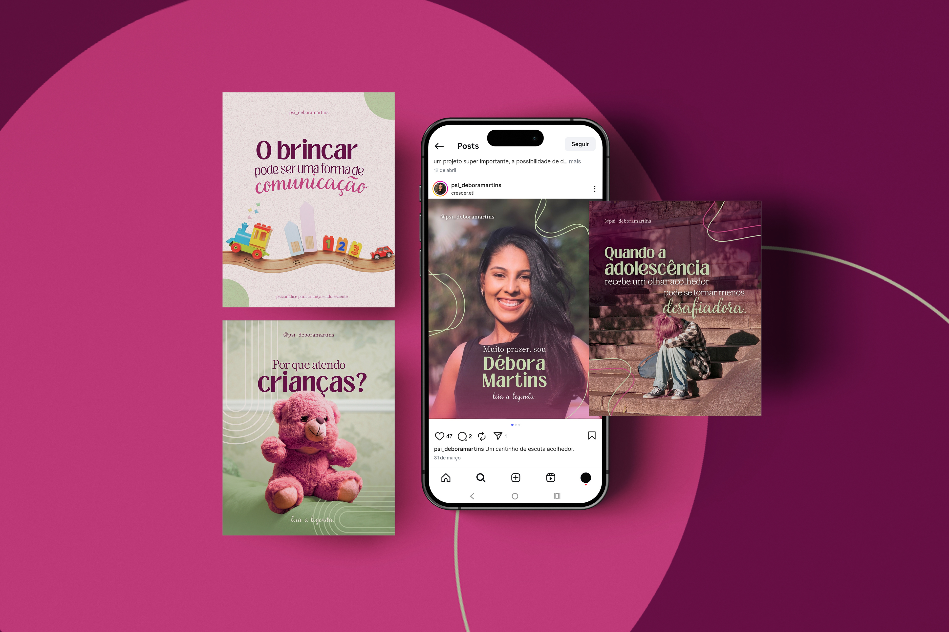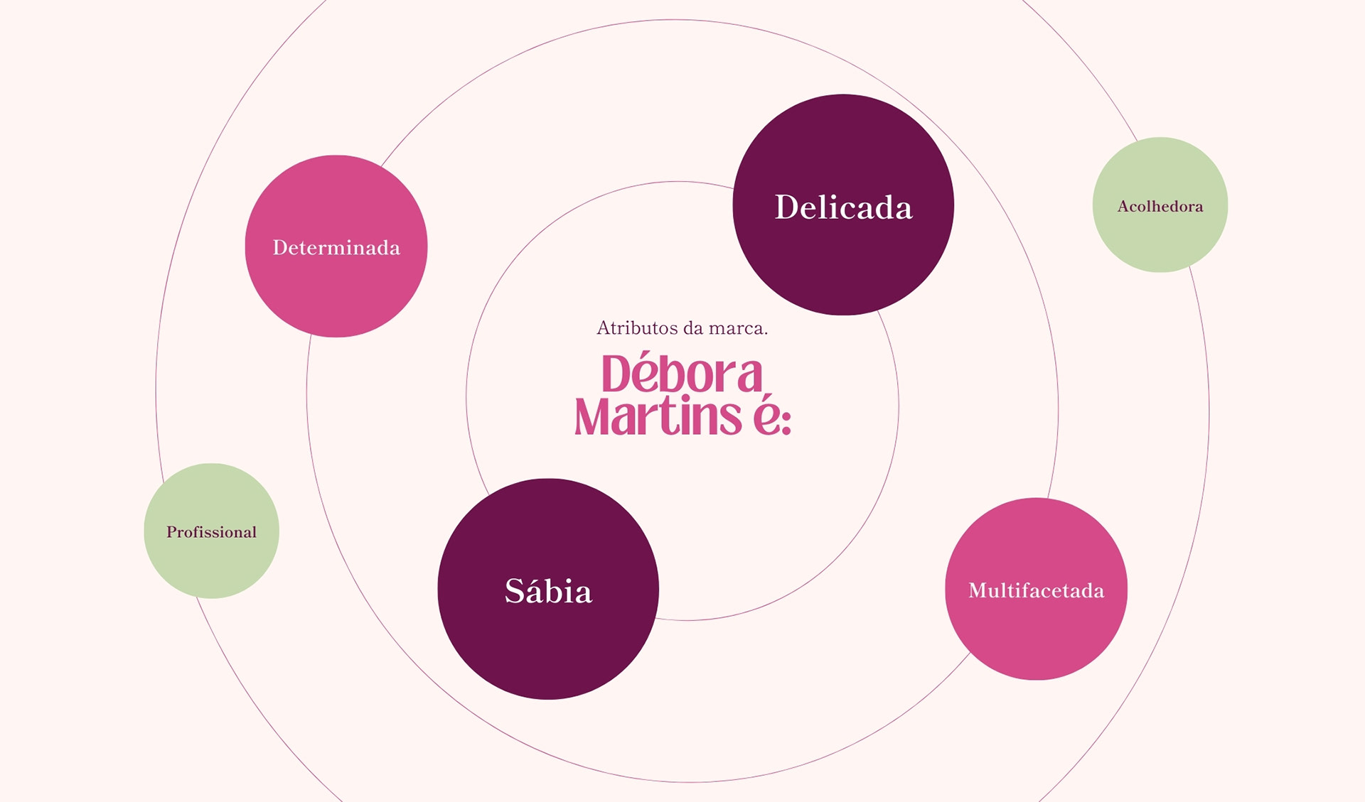 O projeto de rebranding surge em um momento de crescimento e expansão da carreira de Débora Martins, mas mantendo o cuidado e a autenticidade que a diferenciam. Ela desejava fortalecer sua marca pessoal para alcançar novos públicos e transmitir de forma clara sua proposta profissional: profundidade, sensibilidade e acolhimento aliados à seriedade e ao profissionalismo.