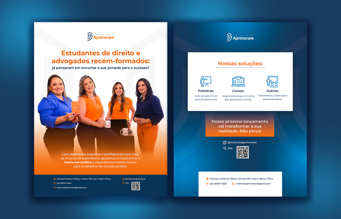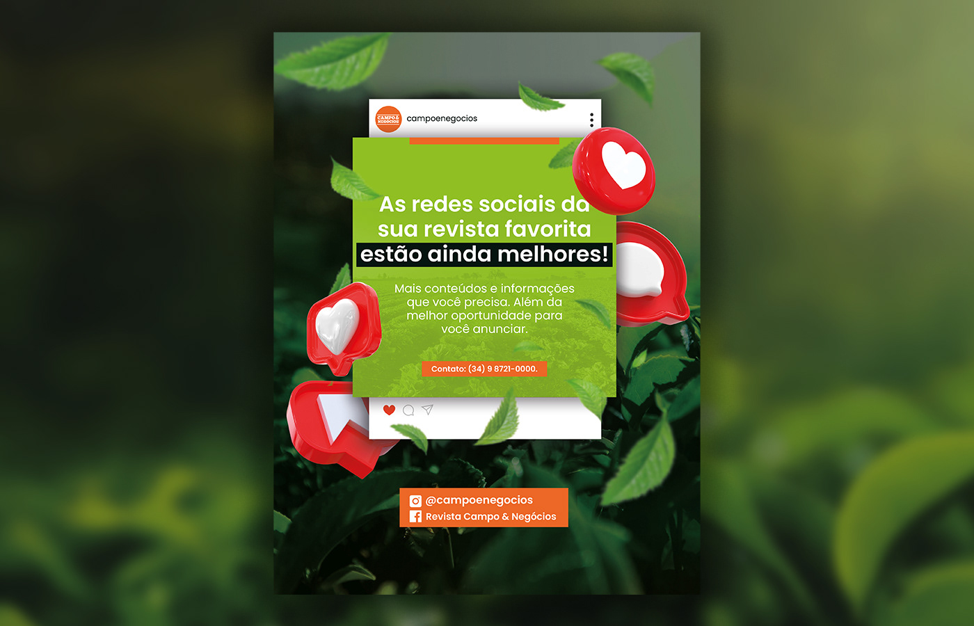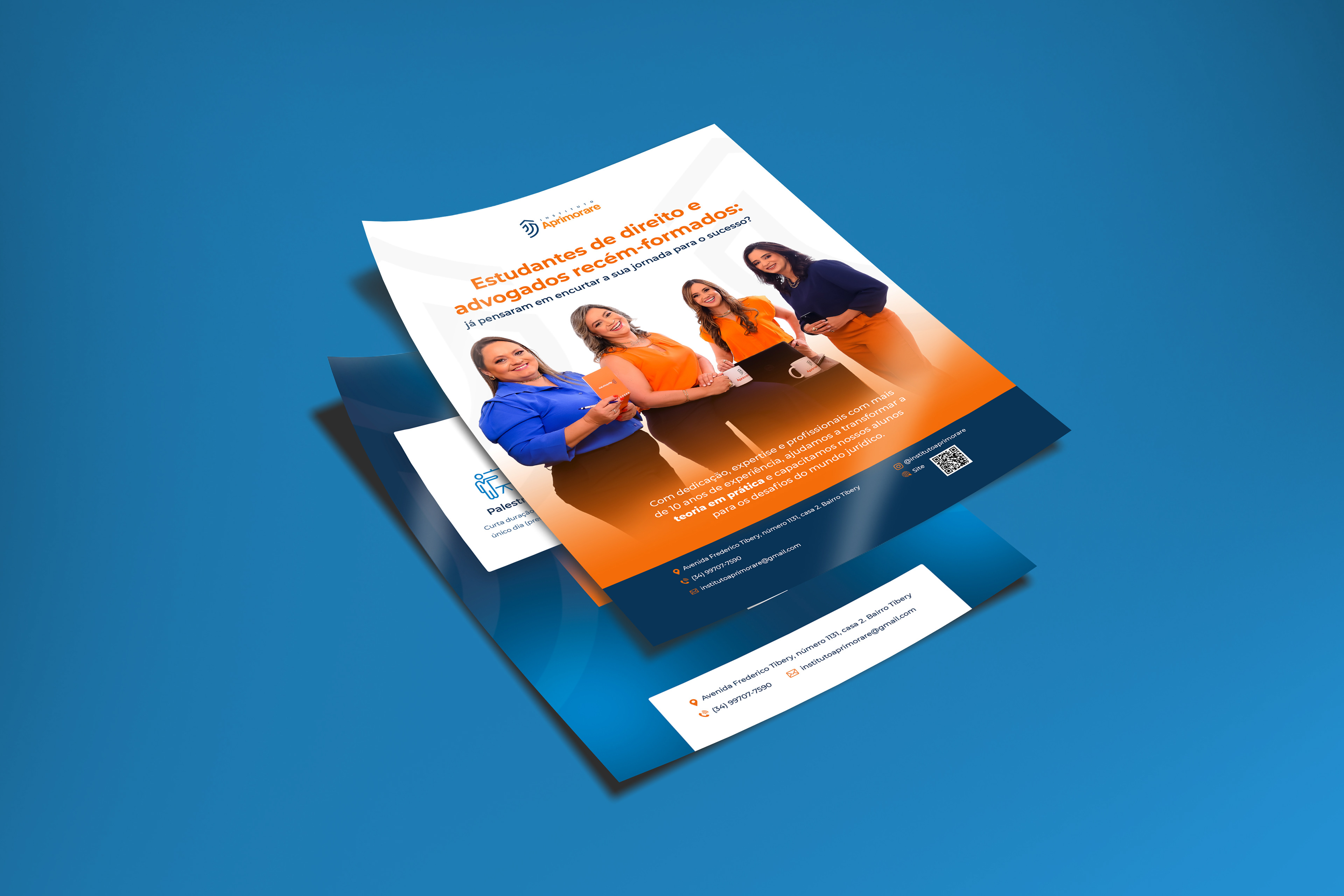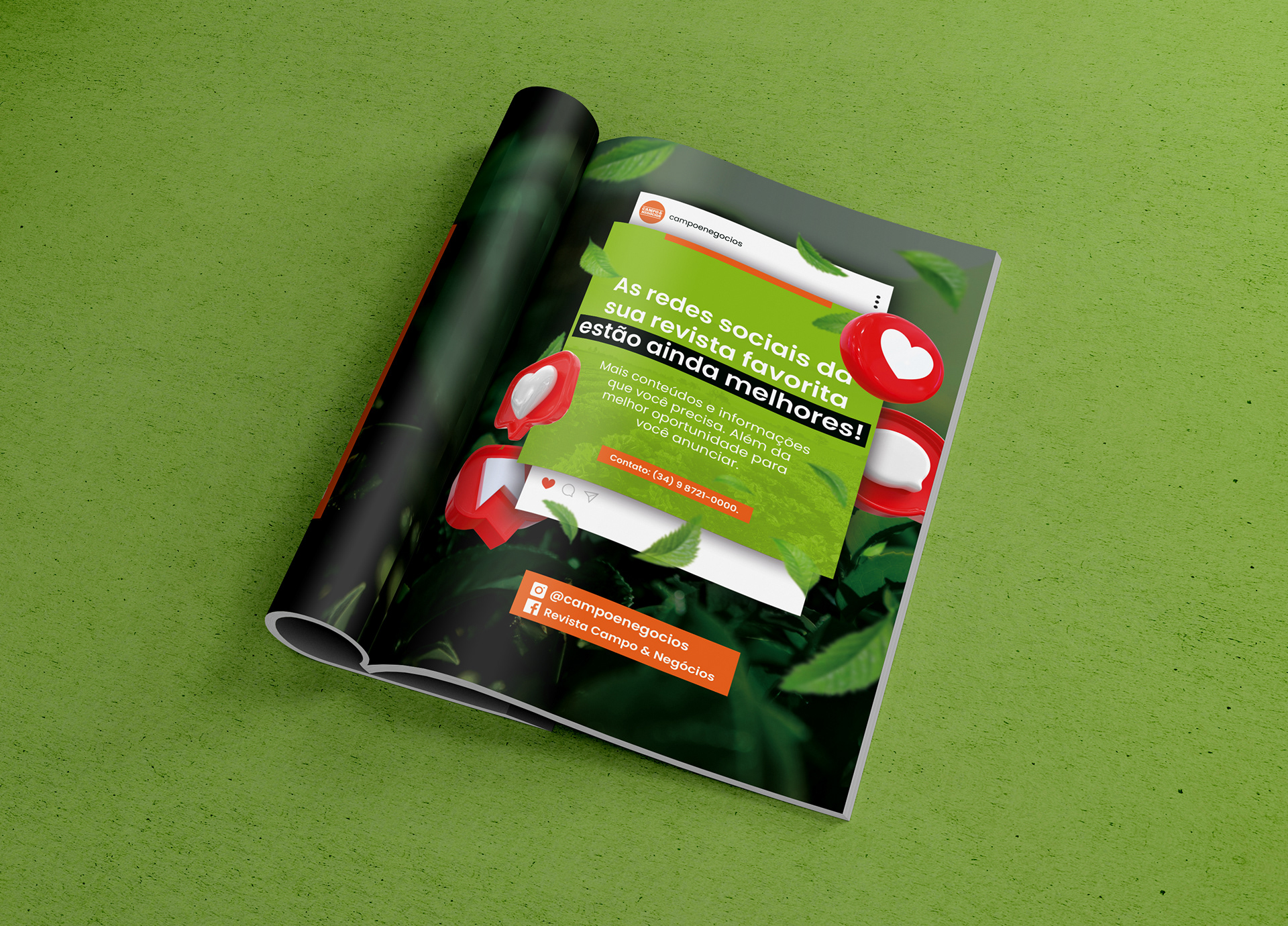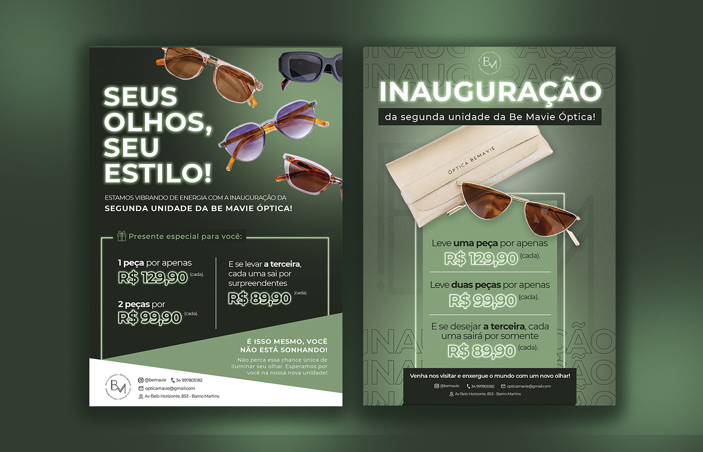 Design de panfletos promocionais e anúncio em revista, desenvolvidos para a Revista Campo & Negócios, Instituto Aprimorare e BeMavie Óptica.