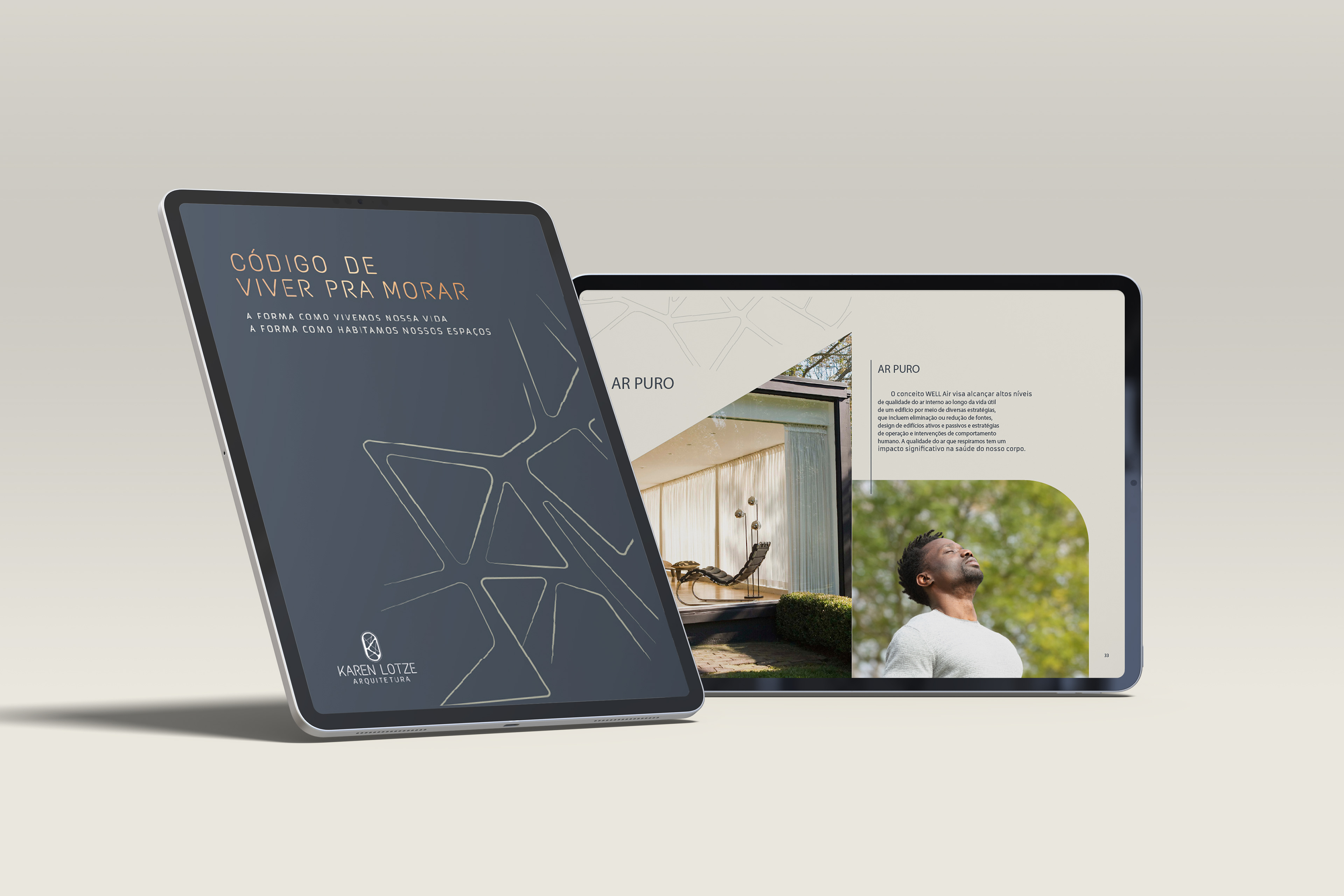 Projeto gráfico do livro "Código de Viver pra Morar" da arquiteta Karen Lotze, com conteúdos que integram saúde do corpo e bem-estar da casa para um viver melhor. O principal desafio desse projeto foi desenvolver um layout adaptável para a versão digital (formato vertical) e física do livro em formato 200x200 mm.
